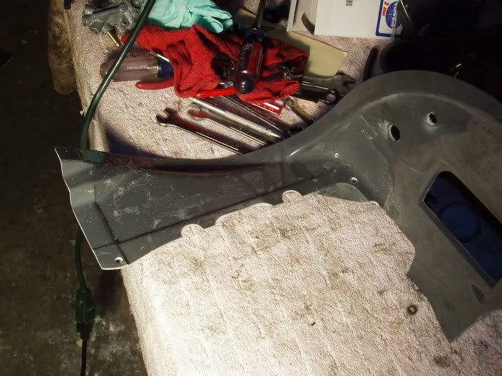 Here are some picts of the "conversion tin" fiberglass I have most of the holes cut for the lines throttle cable etc. when I got it it had none of that. If I had to do it again I would make my own for $250 in cost I have spent 8 hours fitting it and I think I could have built the whole shebang out of auluminum in about 16 hours or so.