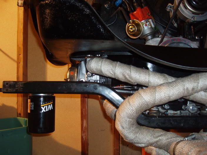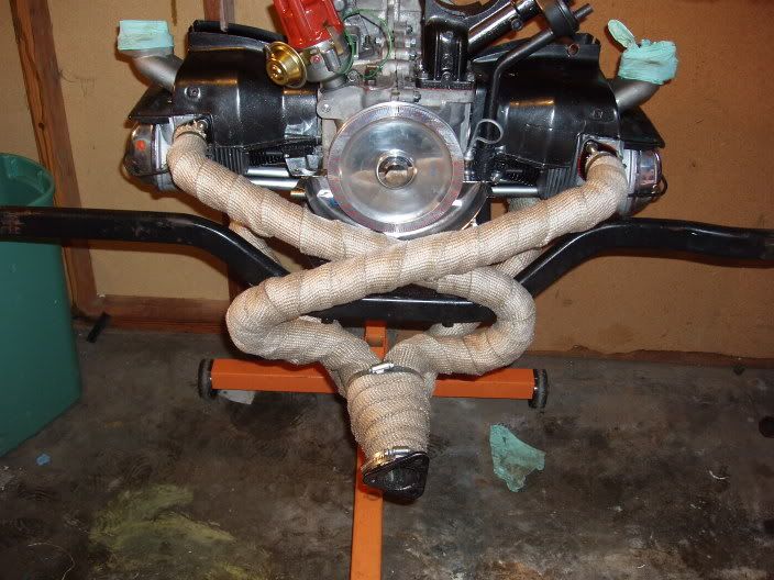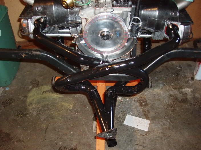 Our engine is going to be .200" wider than stock. I'm still plannin' on runnin' an 1-3/8" system w/boxes - but if that doesn't work to our satisfaction we'll toss on an 1-1/2" beetle header that we widened to fit with stock under cylinder tin/thermostat. I called A-1 muffler yesterday about the possibility of getting a Bay' "sidewinder header" and they're available in several ways, and they work with the stock boxes and BugPack big-bore boxes too.
